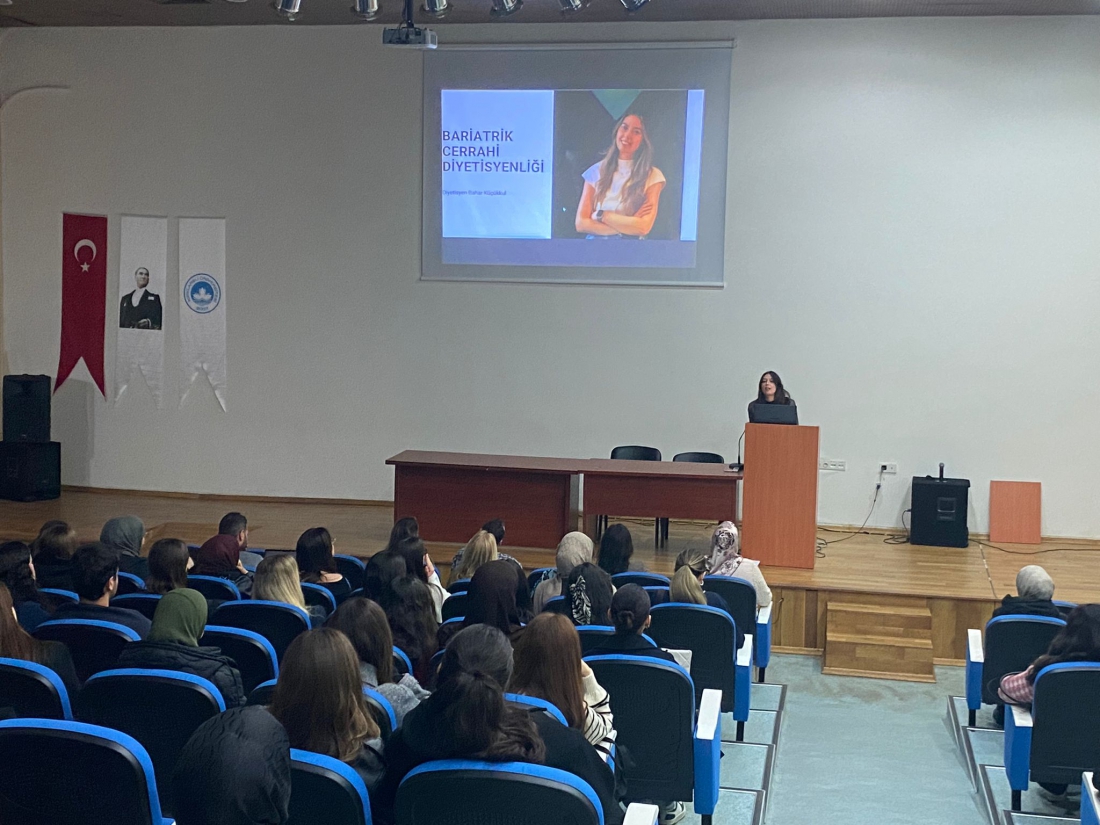 Kırklareli Üniversitesi Sağlık Bilimleri Fakültesi Beslenme ve Diyetetik Bölümünde düzenlenen Mezun–Öğrenci Buluşmaları, 24.11.2025 tarihinde Dr. Öğr. Üyesi Gökçe ÇAKMAK KAFADAR ve Arş. Gör. Dr. Selma FIRAT moderatörlüğünde Diyetisyen Kübra KURT’un çevrim içi “Devlet Hastanesinde Diyetisyen Olmak” başlıklı semineriyle başlamış; KURT konuşmasında multidisipliner çalışma deneyimlerini ve etik ilkelere bağlılığın mesleki süreçlerdeki önemini vurgulamıştır. Etkinlikler 25.11.2025 tarihinde yüz yüze oturumlarla devam etmiş; Diyetisyen İpek Melisa İMRE halk sağlığı alanındaki saha projelerini ve toplum temelli beslenme uygulamalarını, Diyetisyen Bahar KÜÇÜKKUL ise obezite cerrahisi sonrası beslenme yönetimi, klinik beslenme protokolleri ve Erasmus deneyiminin mesleki katkılarını öğrencilerle paylaşmıştır. Her iki günün sonunda konuk konuşmacılara Kariyer Uygulama ve Araştırma Merkezi tarafından hazırlanan Teşekkür Belgeleri takdim edilmiş, programlar öğrencilerin yoğun katılımıyla soru–cevap bölümleriyle tamamlanmıştır.